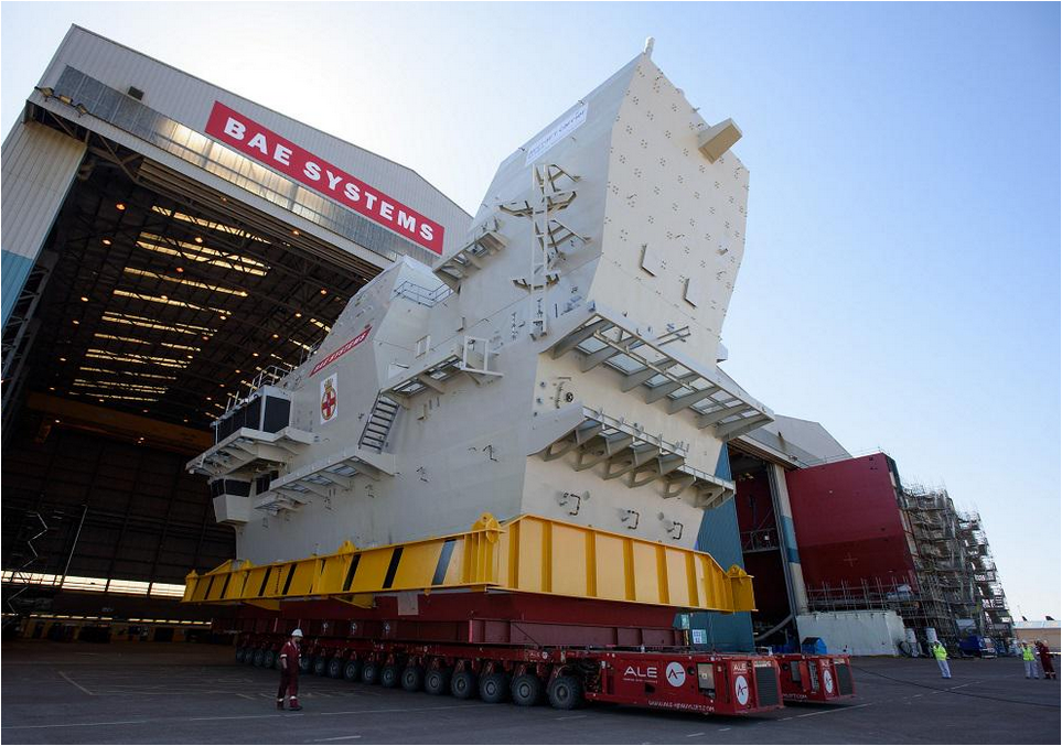 BAE llevaba tiempo ya construyendo el puente de mando de navegación en sus instalaciones en Glasgow. Finalizada la tarea, la compañía recientemente ubicó el enorme puente en un barco de transporte para su desplazamiento a Rosyth, donde se ultima también el HMS Queen Elizabeth. Transportar una mole así no es tarea sencilla. Puedes ver más tomas debajo.