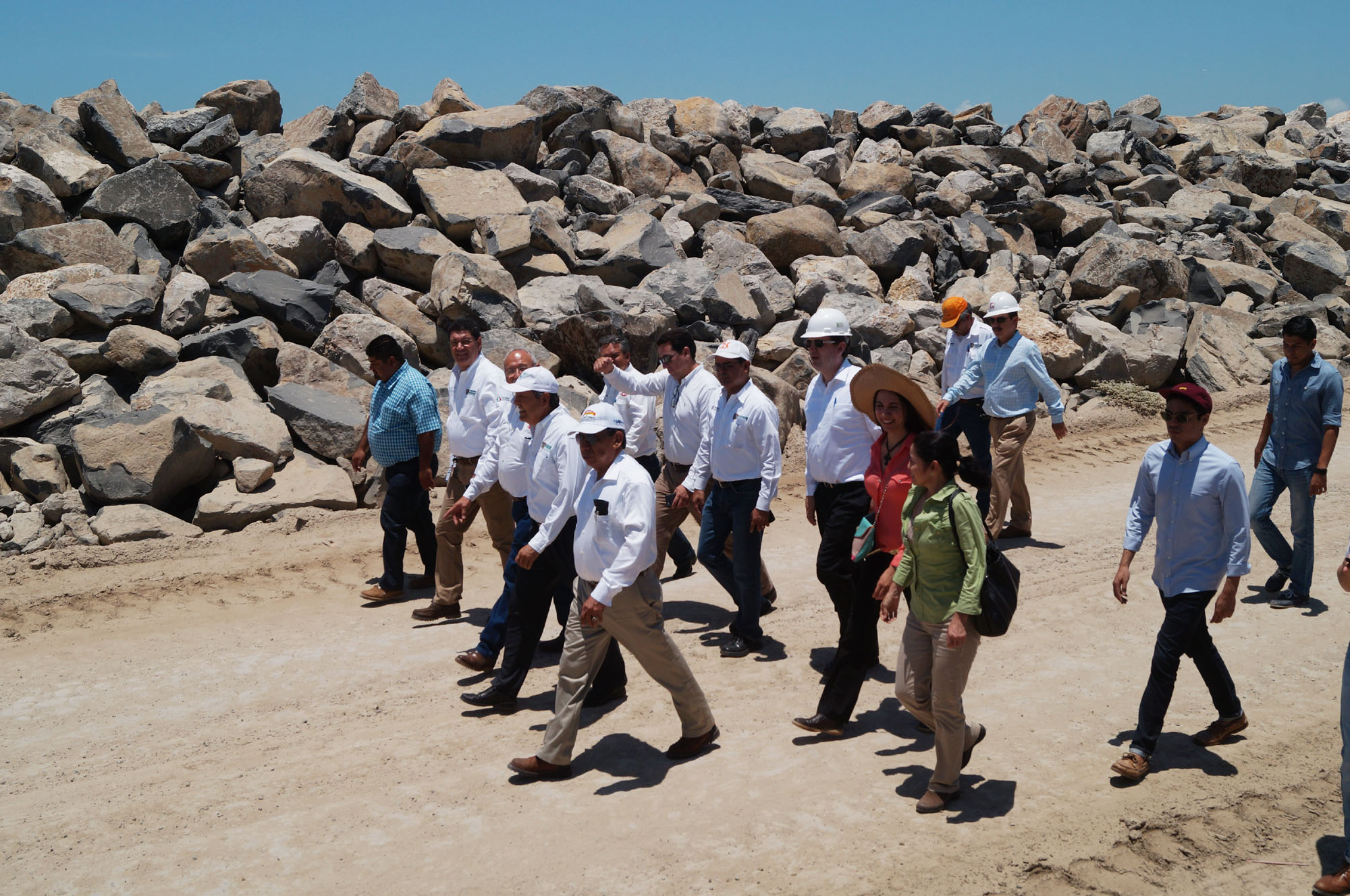 En cuanto a las obras de Anclaje, Rehabilitación y Prolongación de Escolleras a la fecha se presenta un avance del 76.23 por ciento, mientras que la rehabilitación del Muelle Marginal presenta un 67.50 por ciento.