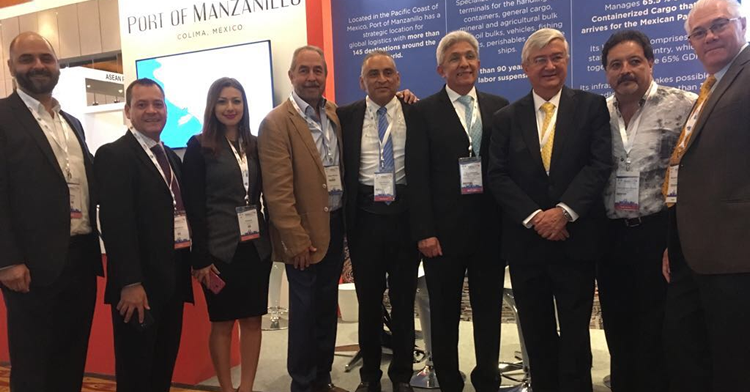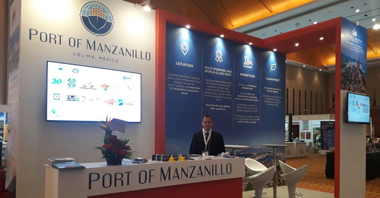 En el Piso de exhibición del Congreso se cuenta con un stand que promociona al Puerto de Manzanillo y está siendo atendido por integrantes de la Comunidad Portuaria, quienes brindan la atención personalizada a los asistentes del evento, además de dar a conocer el trabajo que se realiza en conjunto para lograr una logística eficiente, ordenada y coordinada para las mercancías que se despachan en este recinto.